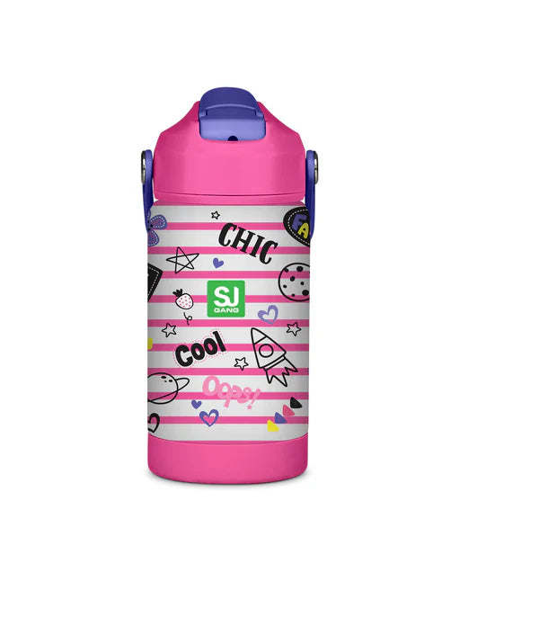 Beccuccio protetto da tappo a chiusura. Base con anello antiscivolo in silicone e maniglia. Portaborraccia con taschina e tracolla. Mantiene le bevande calde per 12 ore e fresche per 24.