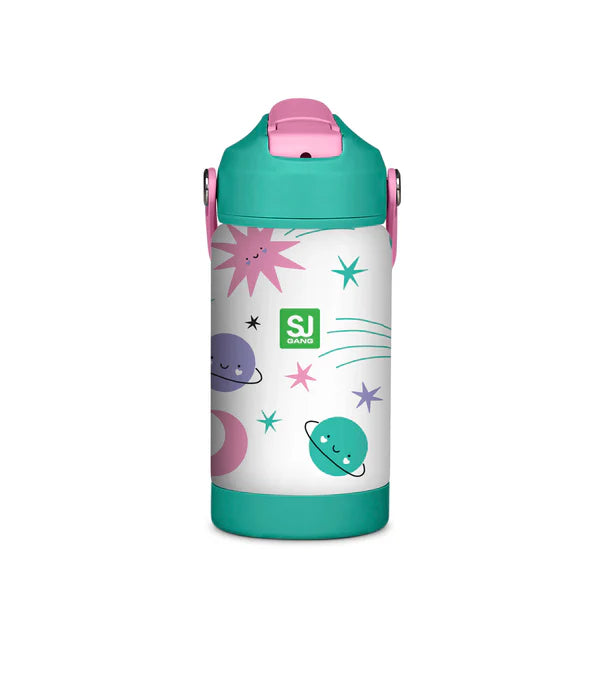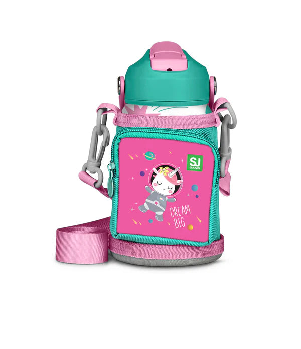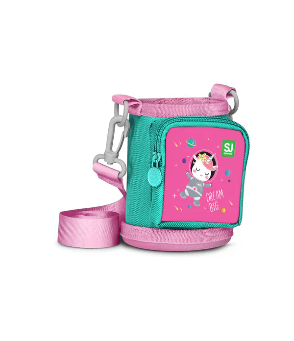 Beccuccio protetto da tappo a chiusura. Base con anello antiscivolo in silicone e maniglia. Portaborraccia con taschina e tracolla. Mantiene le bevande calde per 12 ore e fresche per 24.