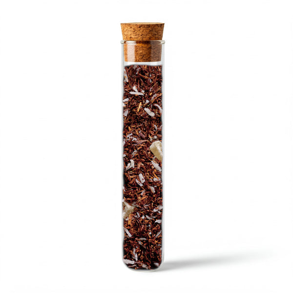 Sdraiati sotto una palma su una spiaggia caraibica, ascoltando il mare e godendoti il ??sole. Questo tocco tropicale è catturato nel nostro Piña Colada Rooibos. Il cocktail classico porta la rilassata sensazione caraibica. La combinazione di ananas fresco fruttato con cocco cremoso e dolce regala un piacere esotico.