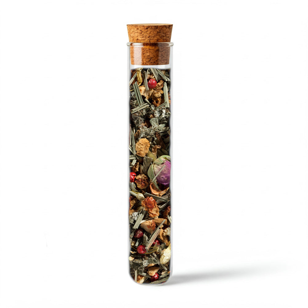 L’eccezionale combinazione di freschezza e piccantezza delicata , grazie alla citronella, ai grani di pepe rosso e al coriandolo, fa sì che questo tè diventi una specialità anche senza alcun aroma aggiunto. È presente anche una leggera dolcezza dovuta ai pezzi di mela e alle foglie di lampone. I fiori di gelsomino aggiungono quel “qualcosa” di speciale. Questa miscela è assolutamente da provare!