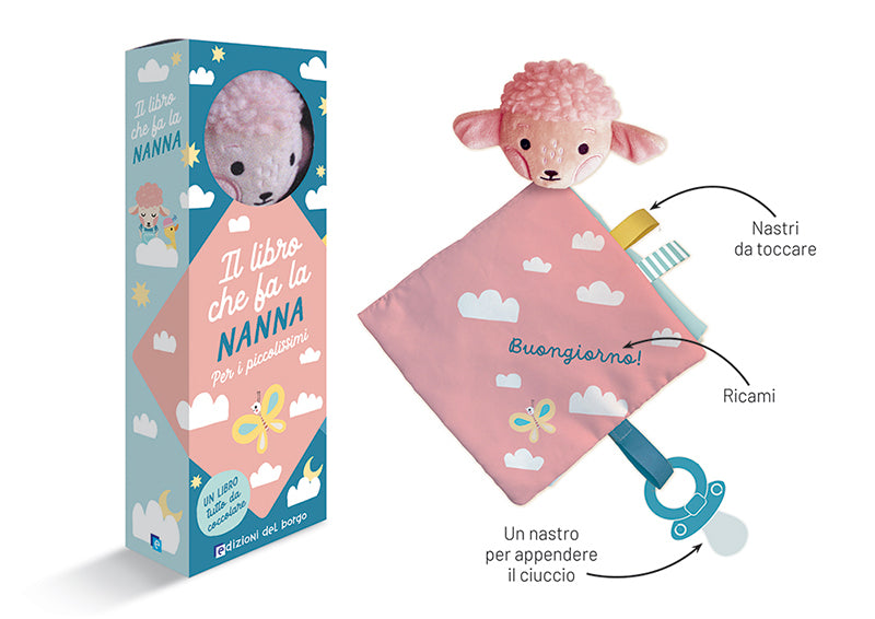 Questo libro-dudù di stoffa, con il musetto di un agnellino, accompagnerà i piccolissimi nel momento della nanna, dando loro conforto e stimolando la multisensorialità, con i suoi colori delicati, i ricami e i morbidi nastri. Una collana di primi libri tutti da coccolare e abbracciare, che i bebè ameranno sin dal primo sonnellino. Età: dai 3 mesi.