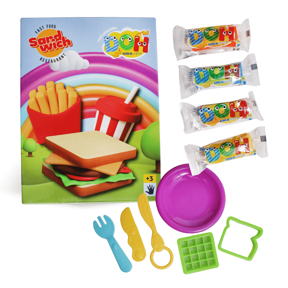 Questa linea di pasta modellabile ti permette di creare banchi tematici come Ice Cream, Sandwich, Burger e Sushi, oltre a dolcetti, frutta e altre delizie natalizie.