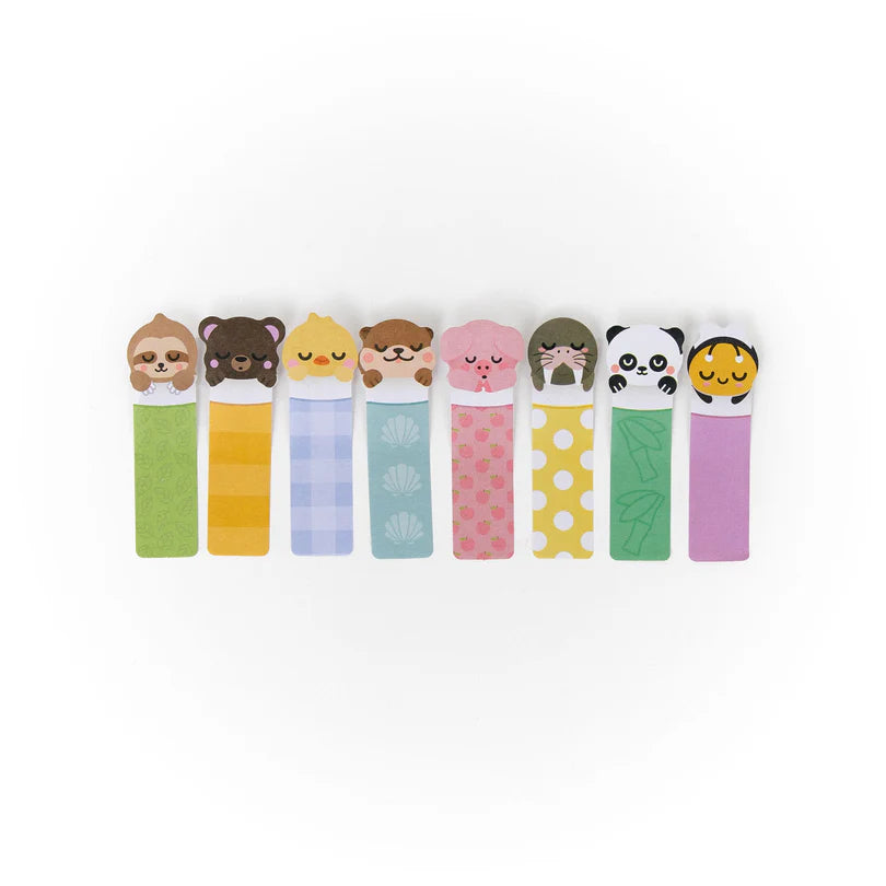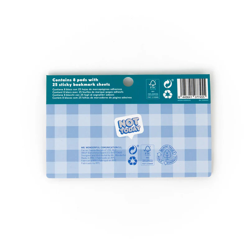 Contiene 8 blocchetti con 25 segnalibri adesivi ciascuno.