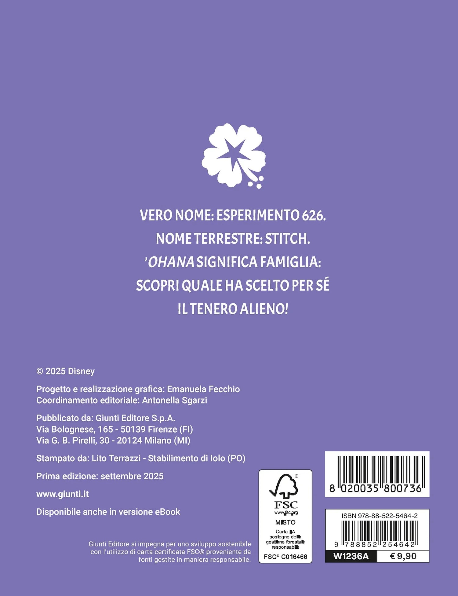Volume scritto in stampatello maiuscolo che contiene due storie illustrate con protagonisti Stitch, Angel e i loro amici. Il nome scientifico originale dato a STITCH era Esperimento 626, codice identificativo dell'esperimento blu! I racconti sono adatti a sviluppare gradualmente l’abitudine di dedicare tempo alla lettura e utili per imparare a leggere autonomamente.