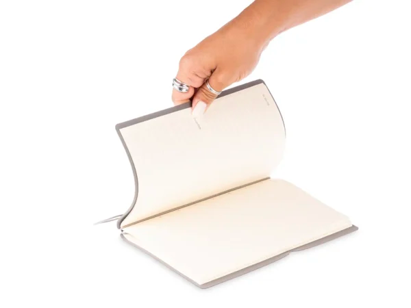 Il design sobrio rende il taccuino un prodotto versatile e raffinato. Il pratico elastico facilita la chiusura.