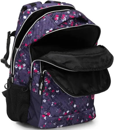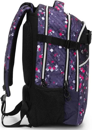 distribuiscono il peso. Con un doppio scomparto, 2 tasche frontali (una sagomata e l'altra obliqua piatta) e 2 tasche laterali in rete porta borraccia con top elasticizzato, questo zaino permette di mantenere in ordine e trasportare facilmente gli articoli per la scuola. È dotato di un fondo termoformato, uno schienale termoformato e imbottito, spallacci imbottiti e regolabili, maniglia imbottita e pratiche chiusure a zip, per un comfort e una resistenza elevati.